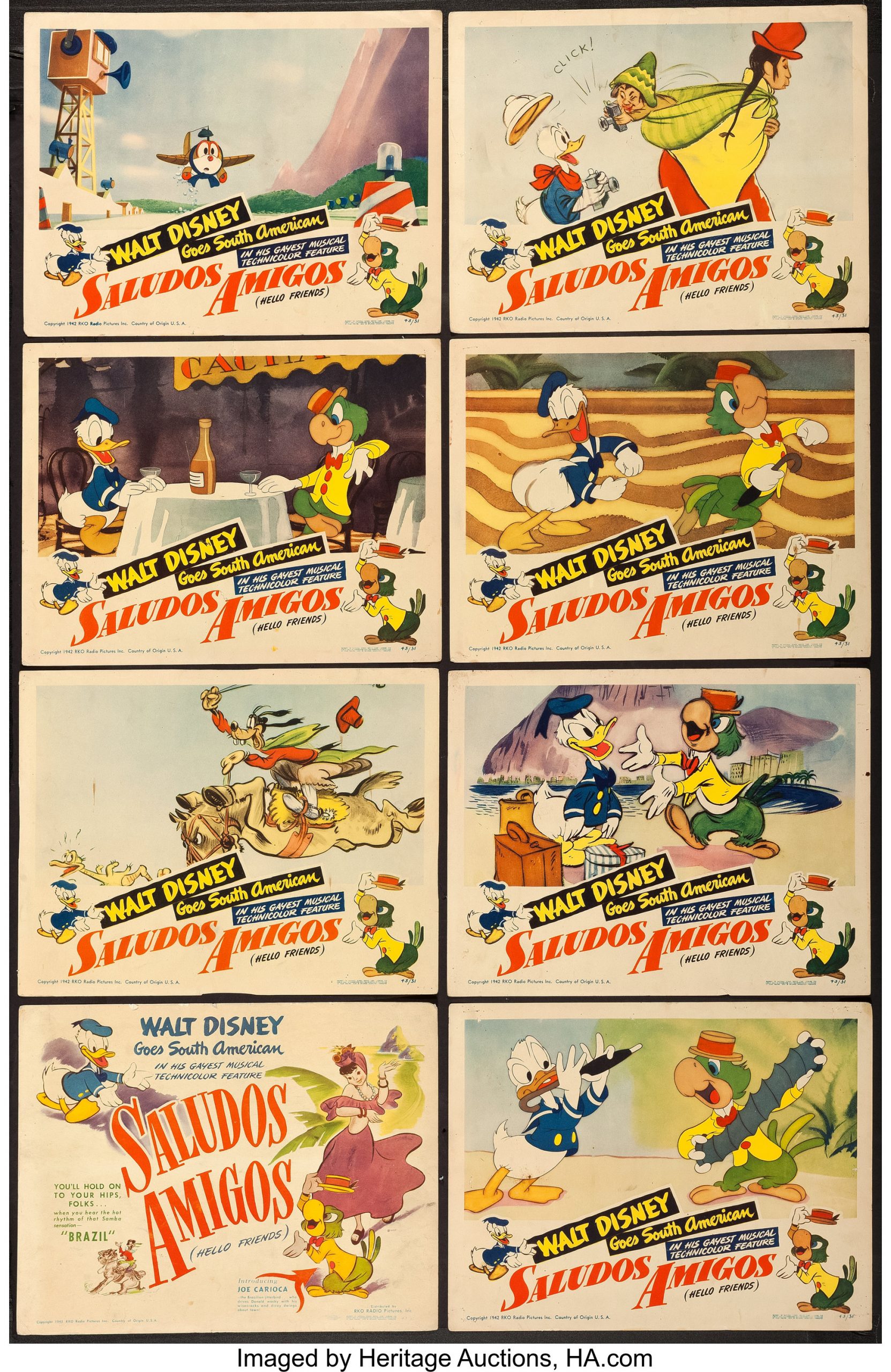 Saludos Amigos (RKO, 1942). Lobby Card Set of 8
