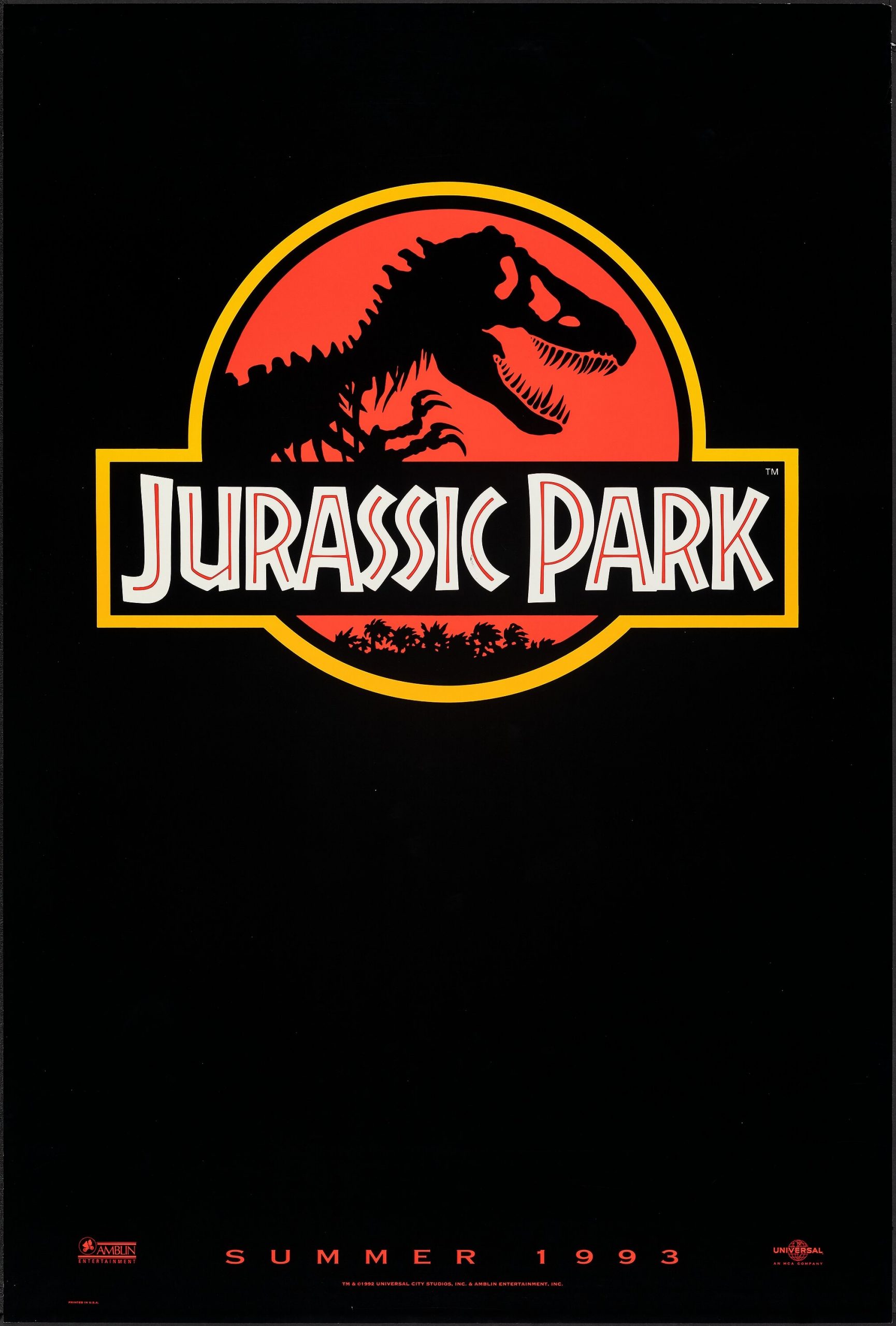 Jurassic Park (Universal, 1993). Rolled, Very Fine+. One Sheet