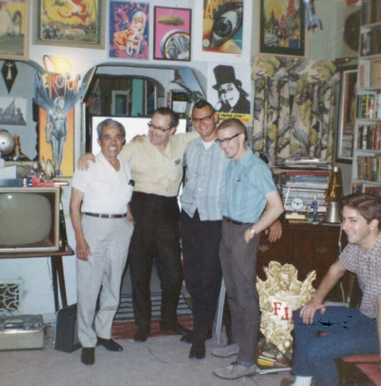 Jon Berg, Forry Ackerman and Jim Danforth at the Ackermansion
