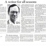 One of my regulars was the author of THE DEATH AND LIFE OF GREAT AMERICAN CITIES, Jane Jacobs. After we had shared a few beers in her kitchen she said to me, “The best part of what you offer is what you have to say.” Considering the source, that ain’t too shabby.