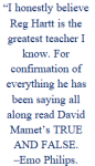 “Like the belief of the terminally ill in medicine the belief of the legitimately frightened in the educational process is a comforting lie.”—David Mamet, TRUE AND FALSE.