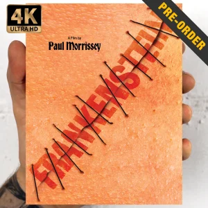 This package contains the Flesh For Frankenstein three-disc set, including a 4K UHD (in HDR) edition of the film, and a 2-BDs, one containing the NEVER BEFORE ON VIDEO original 3-D version of the film, as well as the Flat version, plus close to 2 hours of newly shot video interviews all housed in a deluxe hardshell case adorned with the classic artwork associated with this iconic film.
