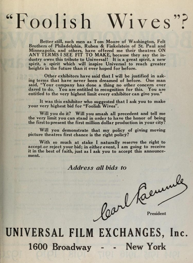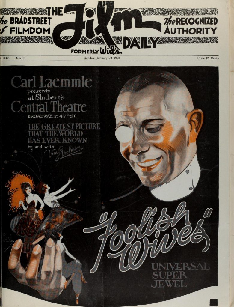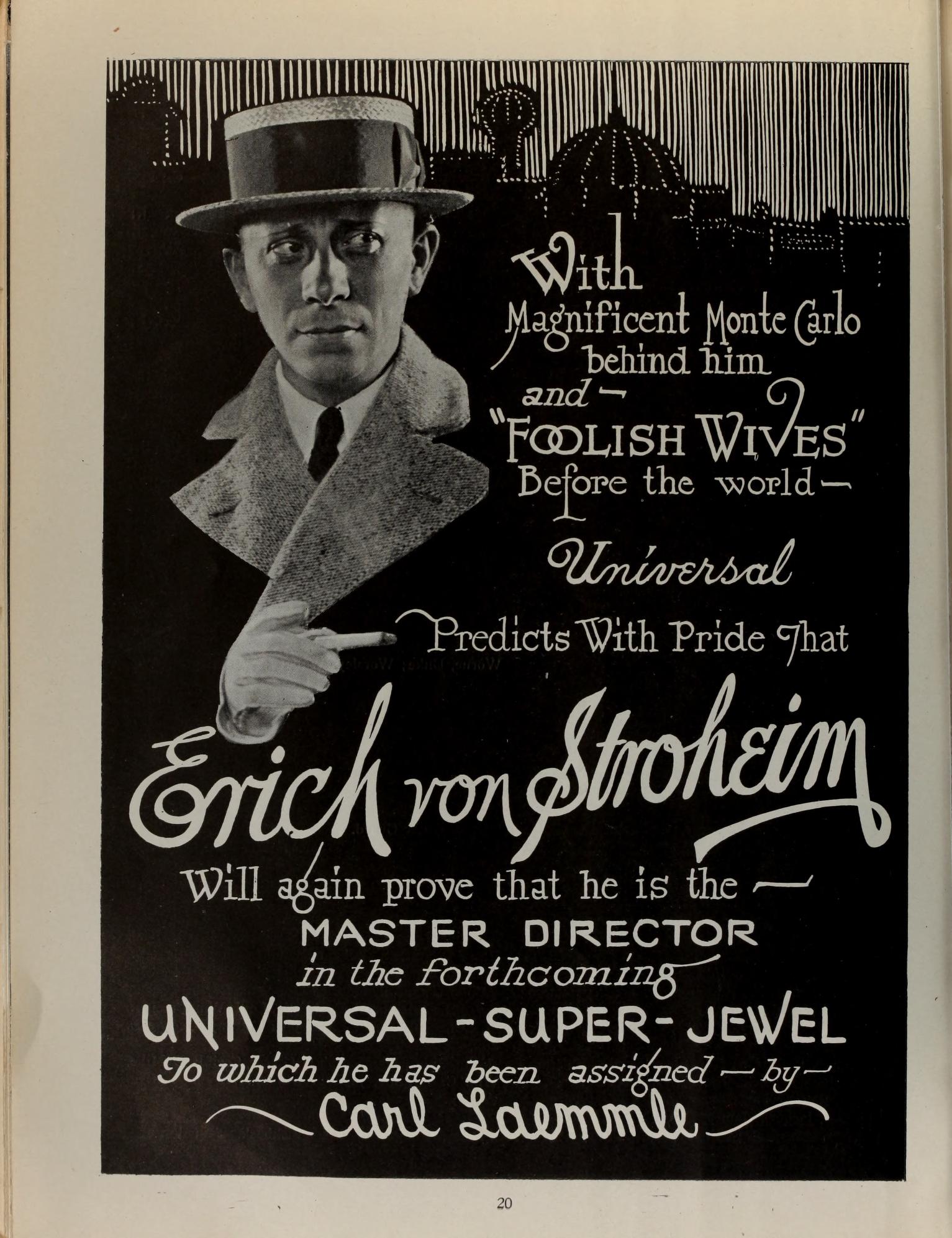 The bane of Erich Von Stroheim’s film making career was 20 year old Irving Thalberg who was put in charge of production at Universal by studio head Carl Laemmle.