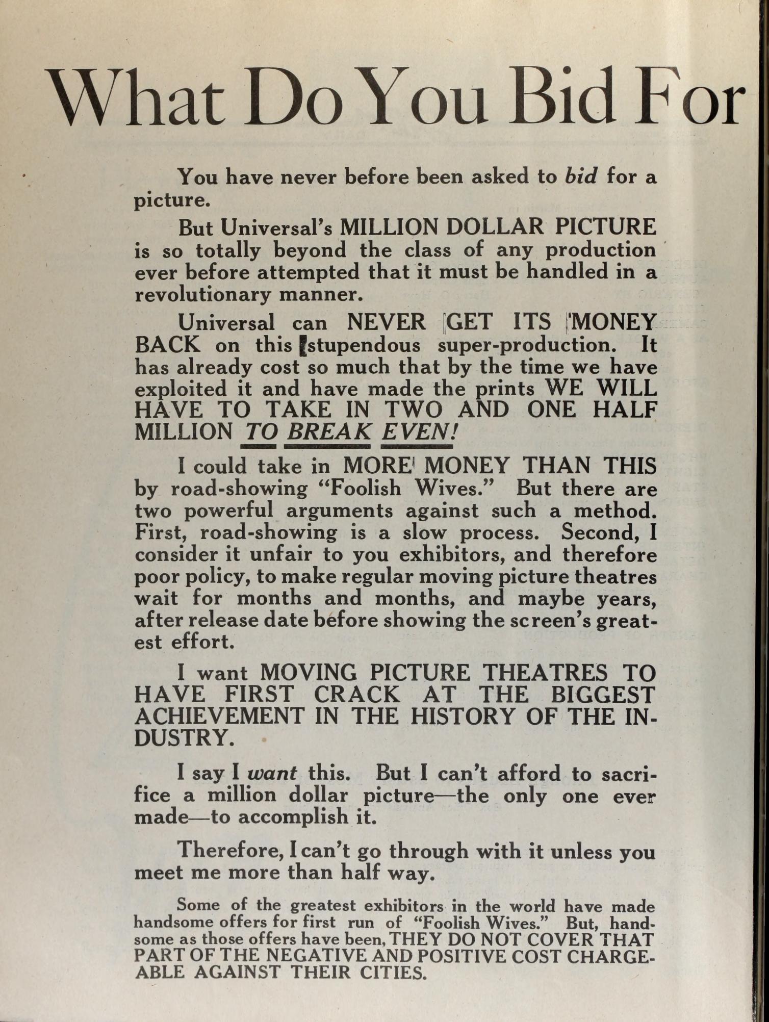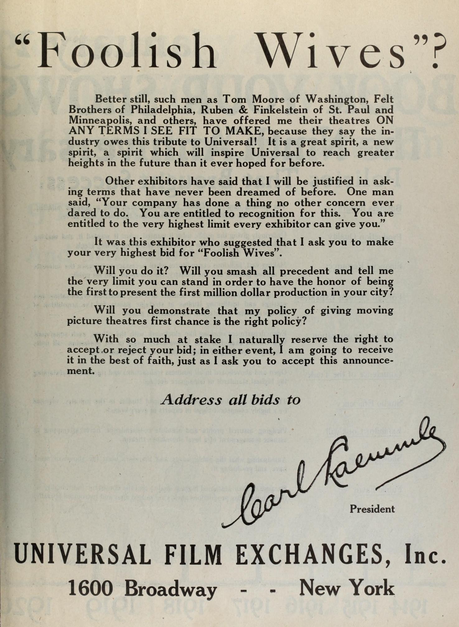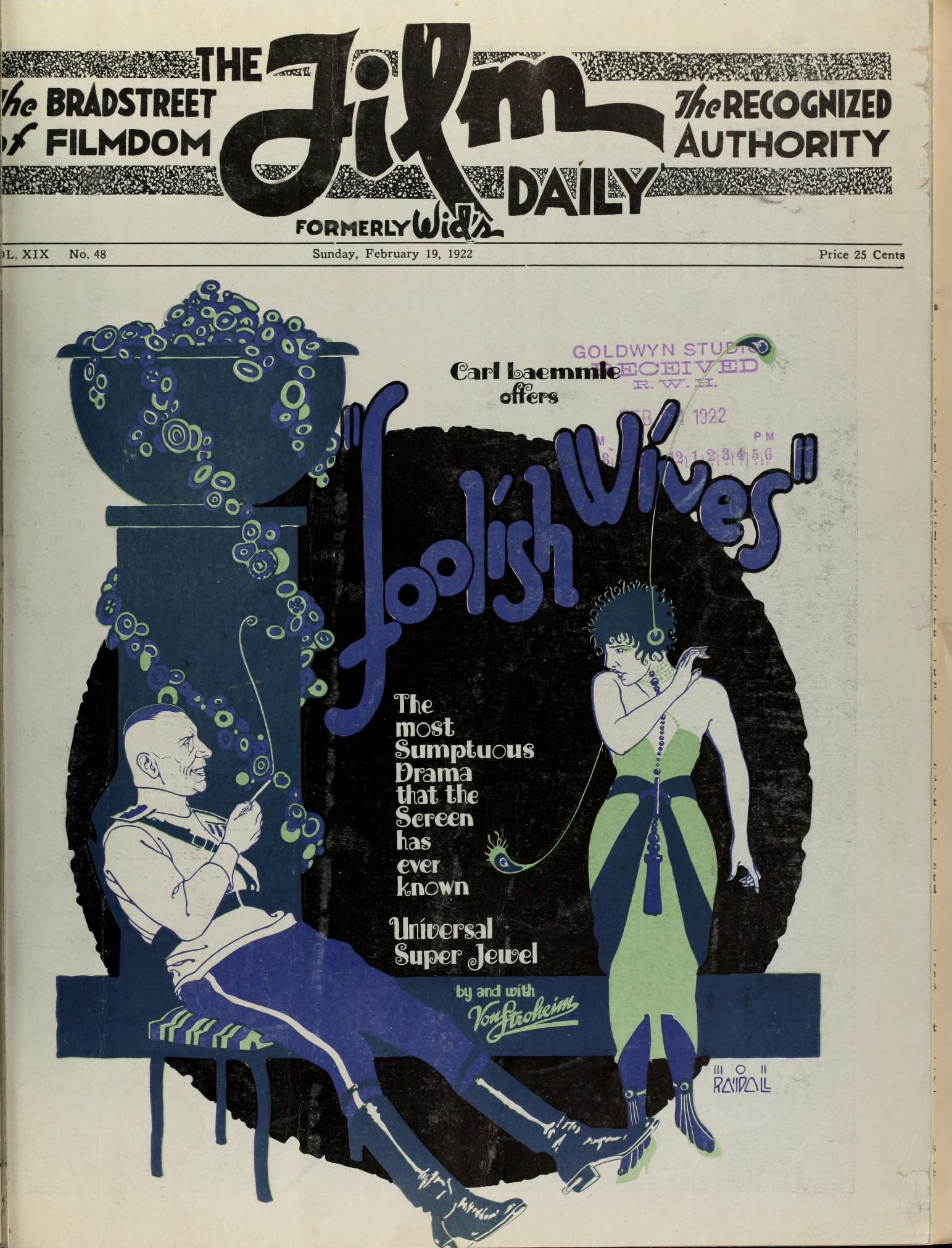 The bane of Erich Von Stroheim’s film making career was 20 year old Irving Thalberg who was put in charge of production at Universal by studio head Carl Laemmle.