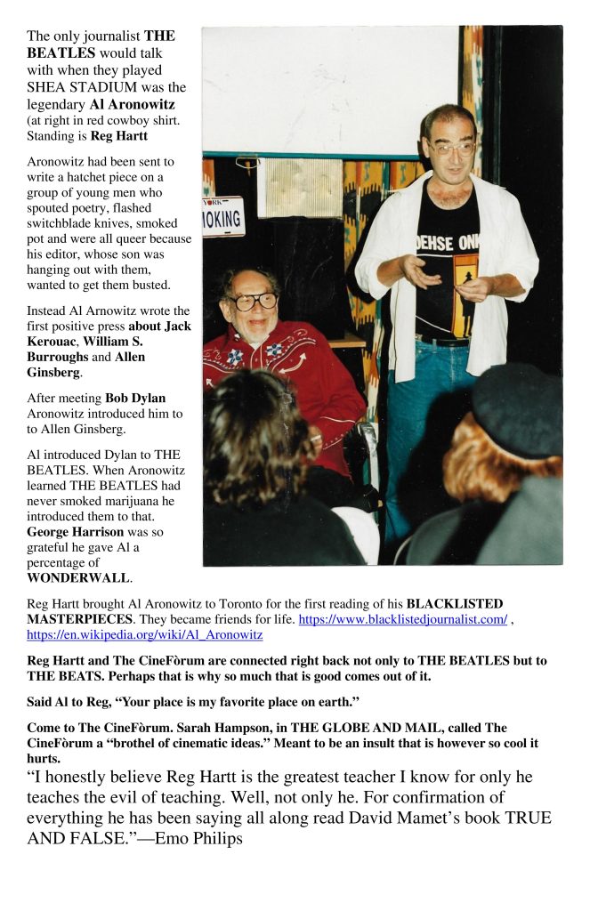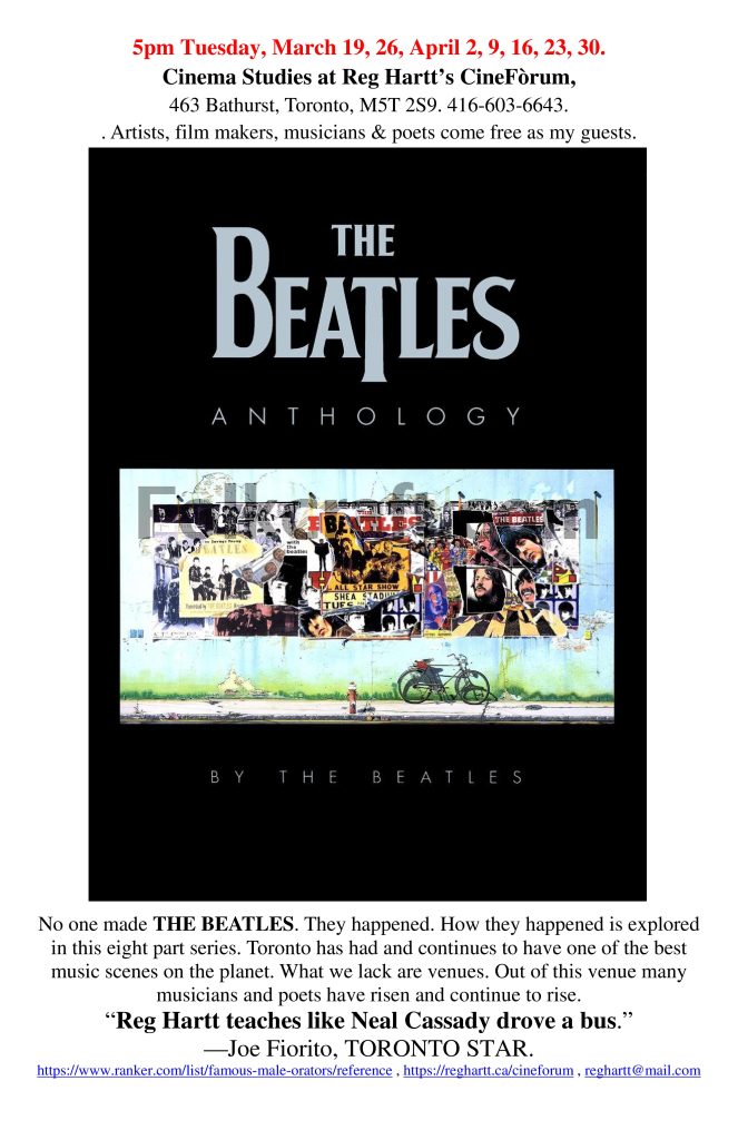 All we need is love. Artists, film makers, musicians and poets generally speaking have no money and work in the evening. They are my guests for this program. Not only is this a study in documentary film making (and an excellent one) it is a study in THE BEATLES and the rise of the music industry. Toronto has had and continues to have one of the best music scenes on the planet. That scene keeps getting killed by festivals that kill the venues that support the scene.