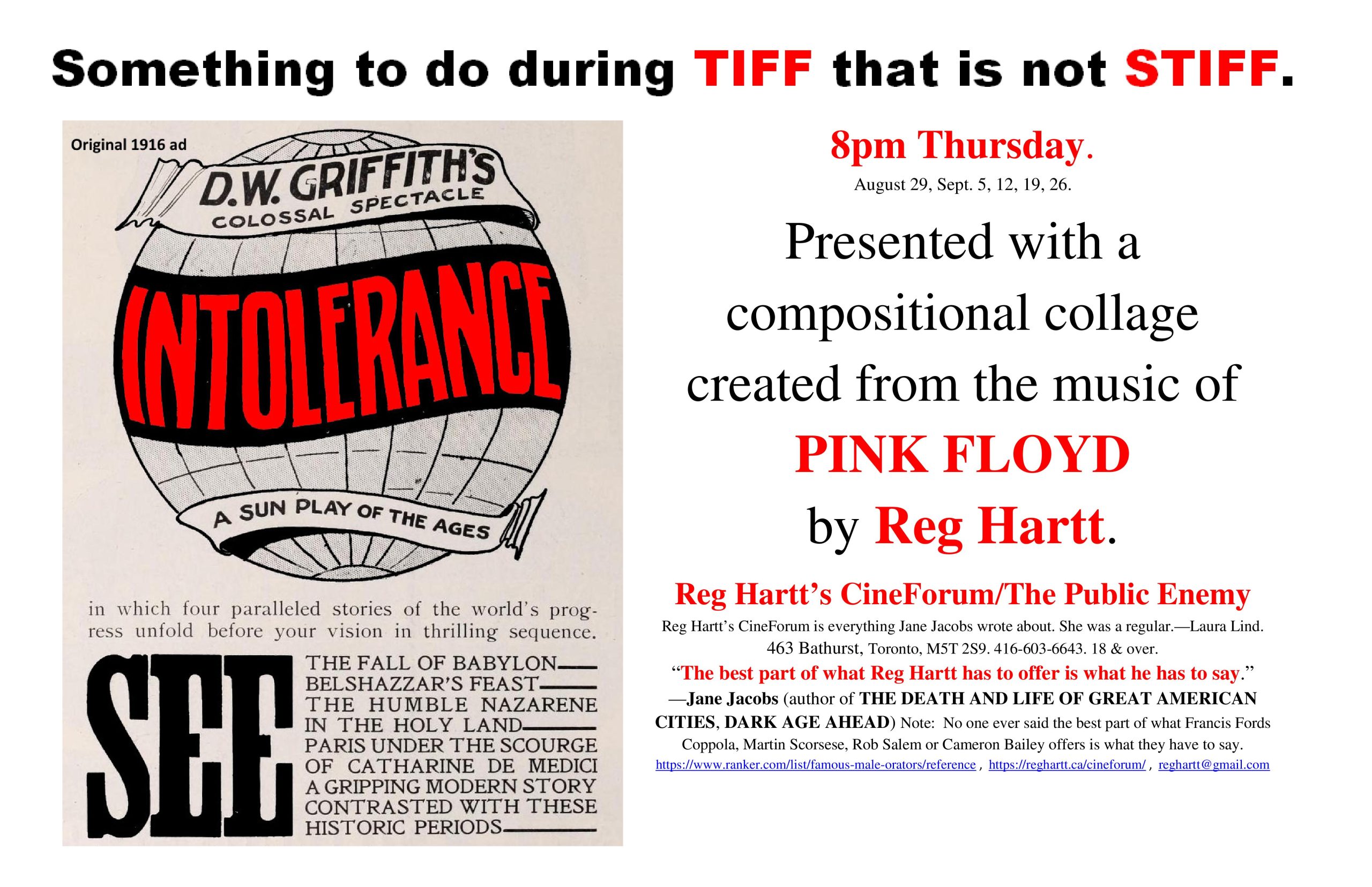 Experience D. W. Griffith’s INTOLERANCE as no one Reg Hartt would imagine to present it.