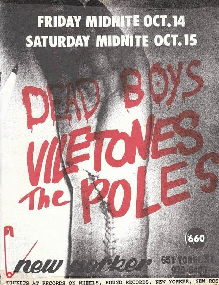 The CBGB poster advertised a weekend of shows with California rockers the Cramps hosting “three outrageous punk bands from Toronto, Canada,” the Viletones, the Diodes and Hamilton’s Teenage Head.