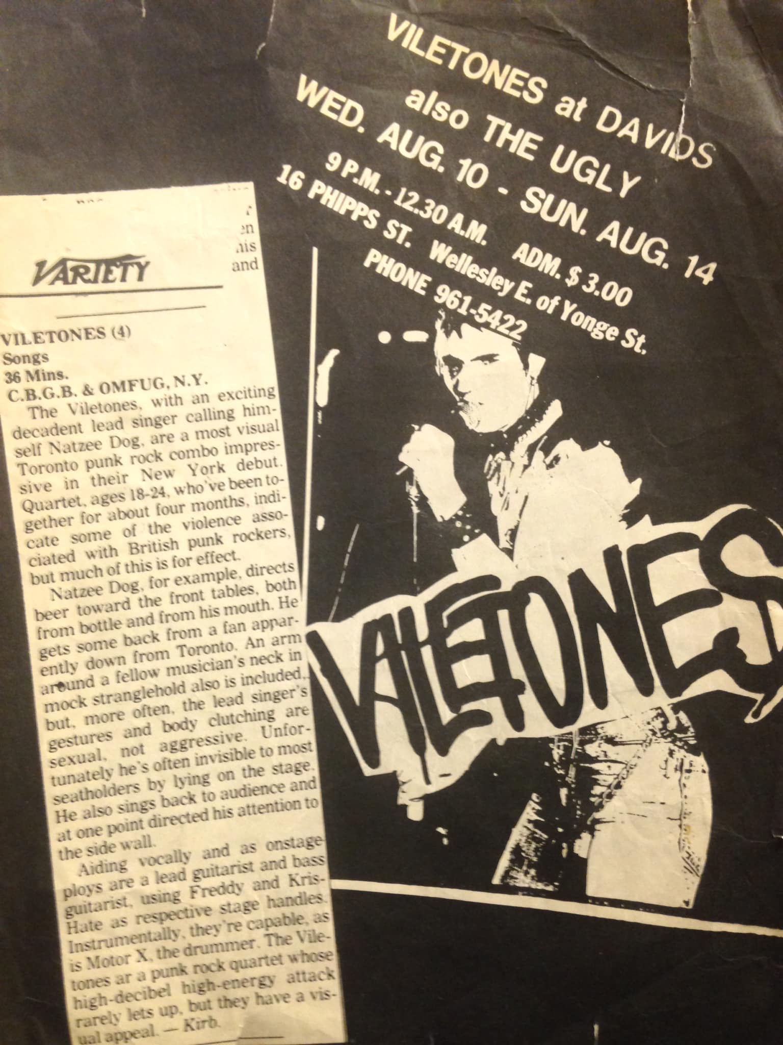 On May 4, 1977, Toronto punk rock pioneers the Viletones played the Colonial Underground, a basement club on Yonge Street. Singer and group founder Steven Leckie had previously typed up a manifesto criticizing the city’s rock music elite as being antiquated.