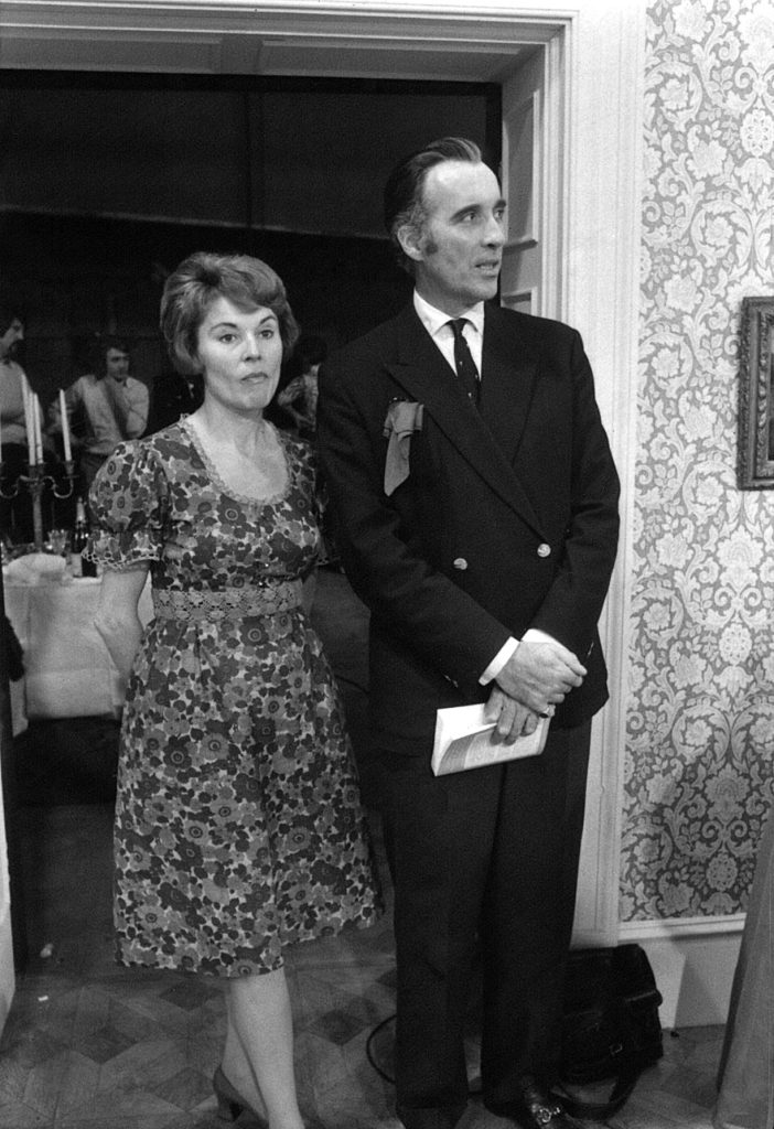 Christopher Lee with producer Josephine Douglas on the opening party set. Dracula A.D. 1972. Hammer Films, 1972.