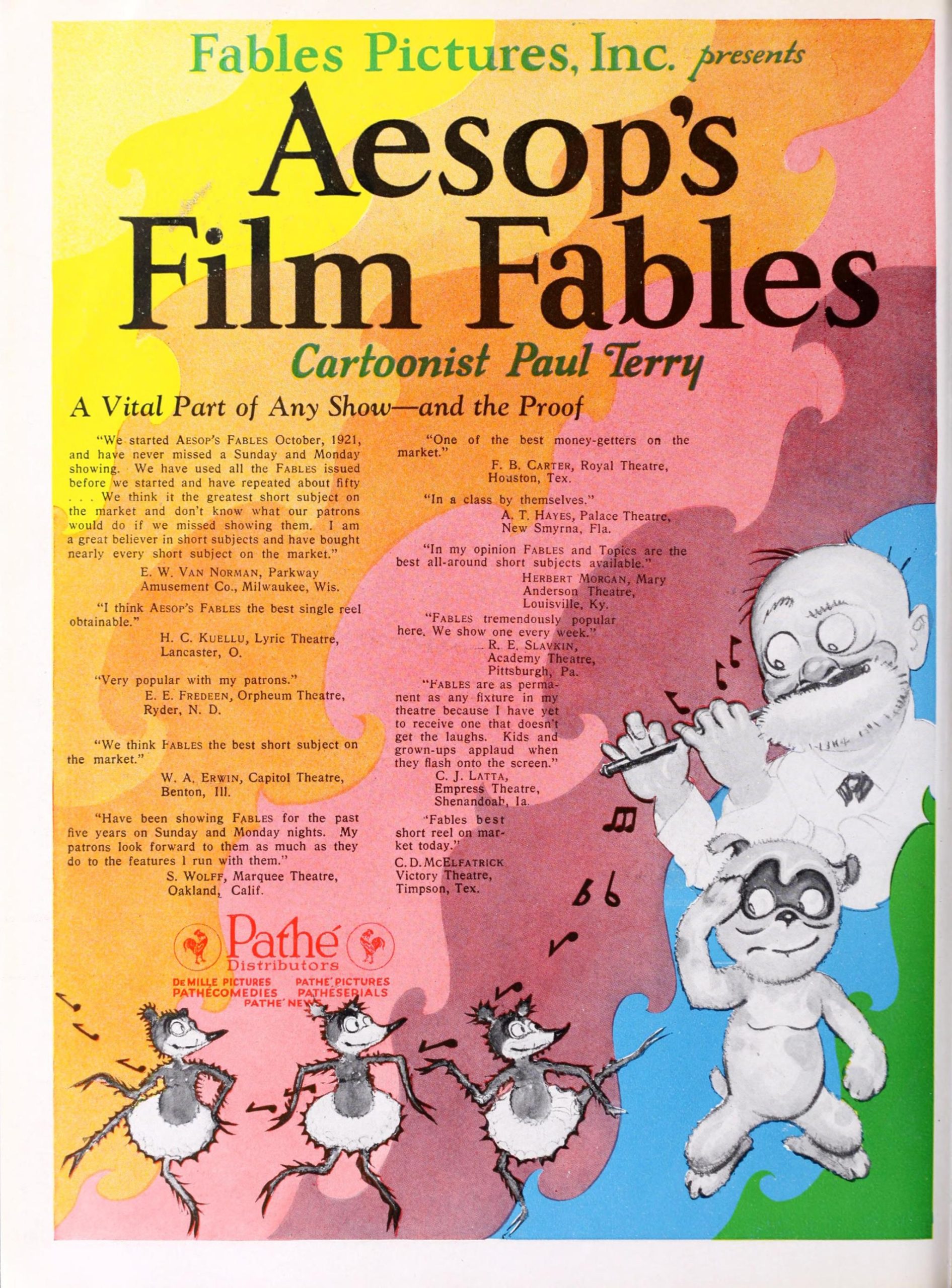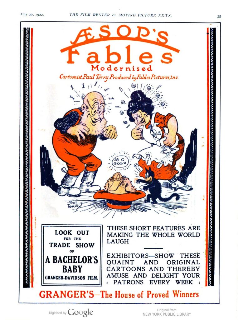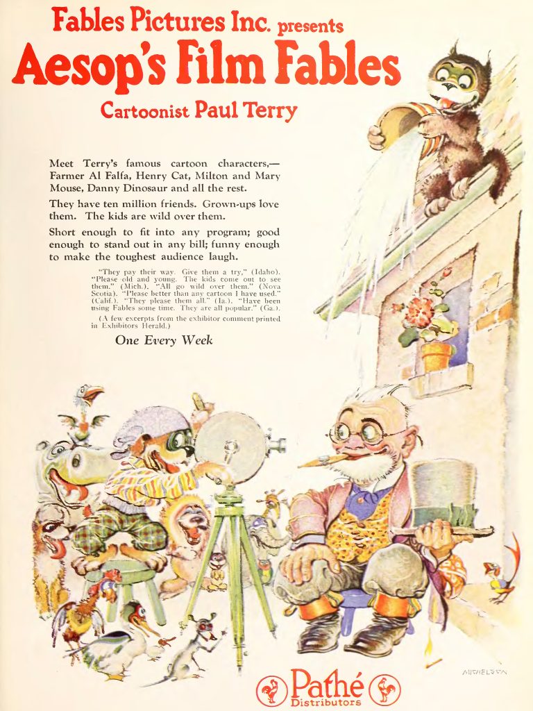 Long before Paul Terry found success with Mighty Mouse, he spent the 1920s producing the Aesop’s Fables series starring his original character Farmer Al Falfa and an endless cast of violent, funny animals. Loosely connected to those ancient tales and bookended with a “sugar-coated pill of wisdom,” the cartoons were an all-encompassing umbrella of new dynamics and concepts.