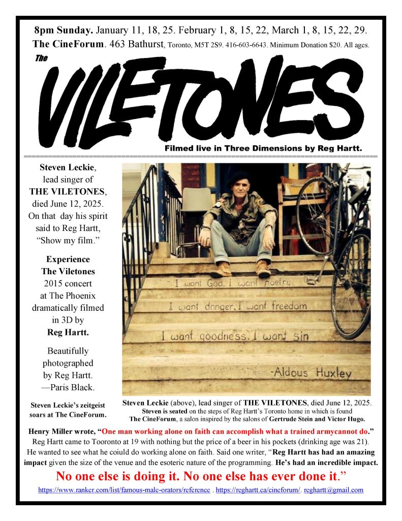 STEVEN LECKIE: THE VILETONES 8pm Sunday.