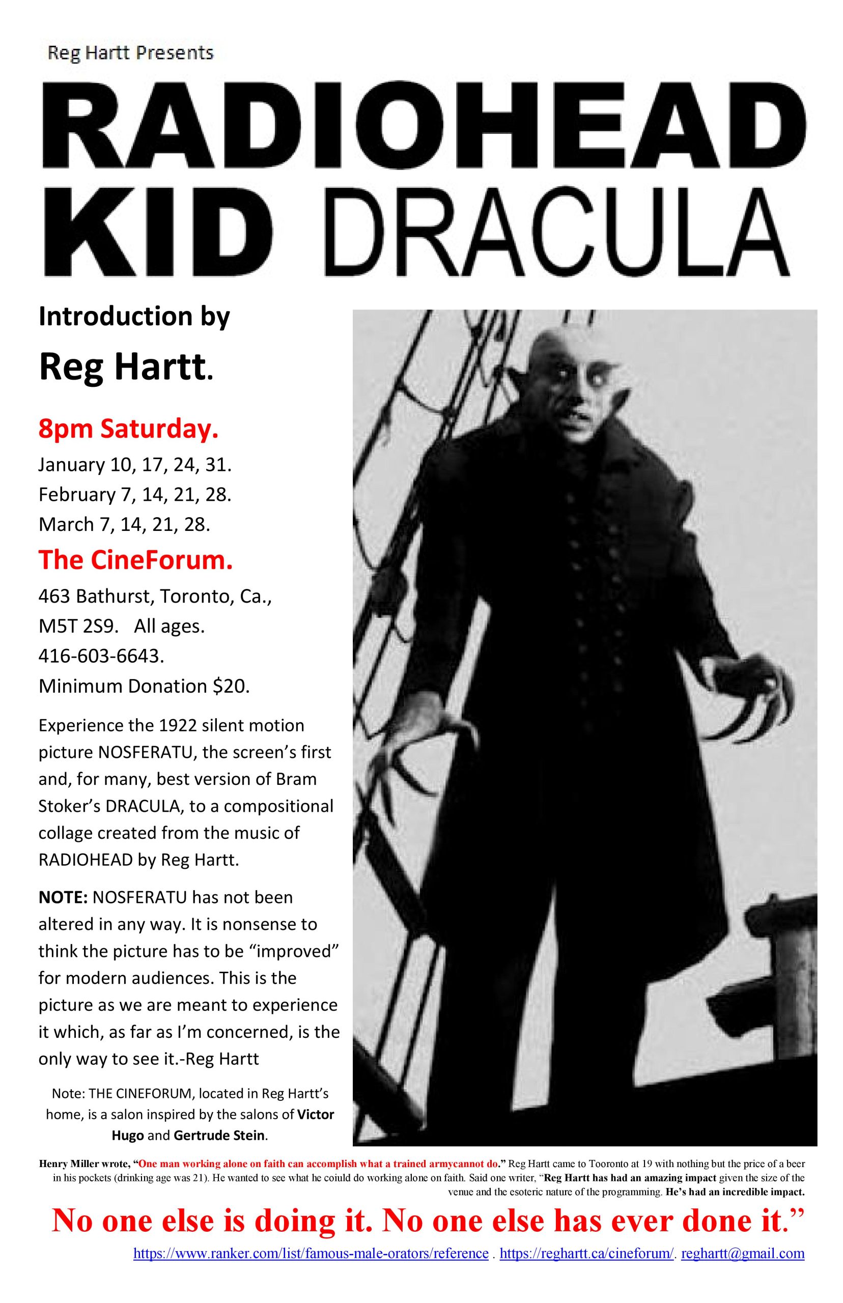 Filed Under: 1. Schedule by admin — Comments Off on KID DRACULA [NOSFERATU to RADIOHEAD}