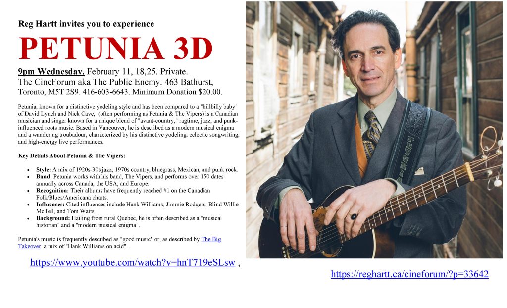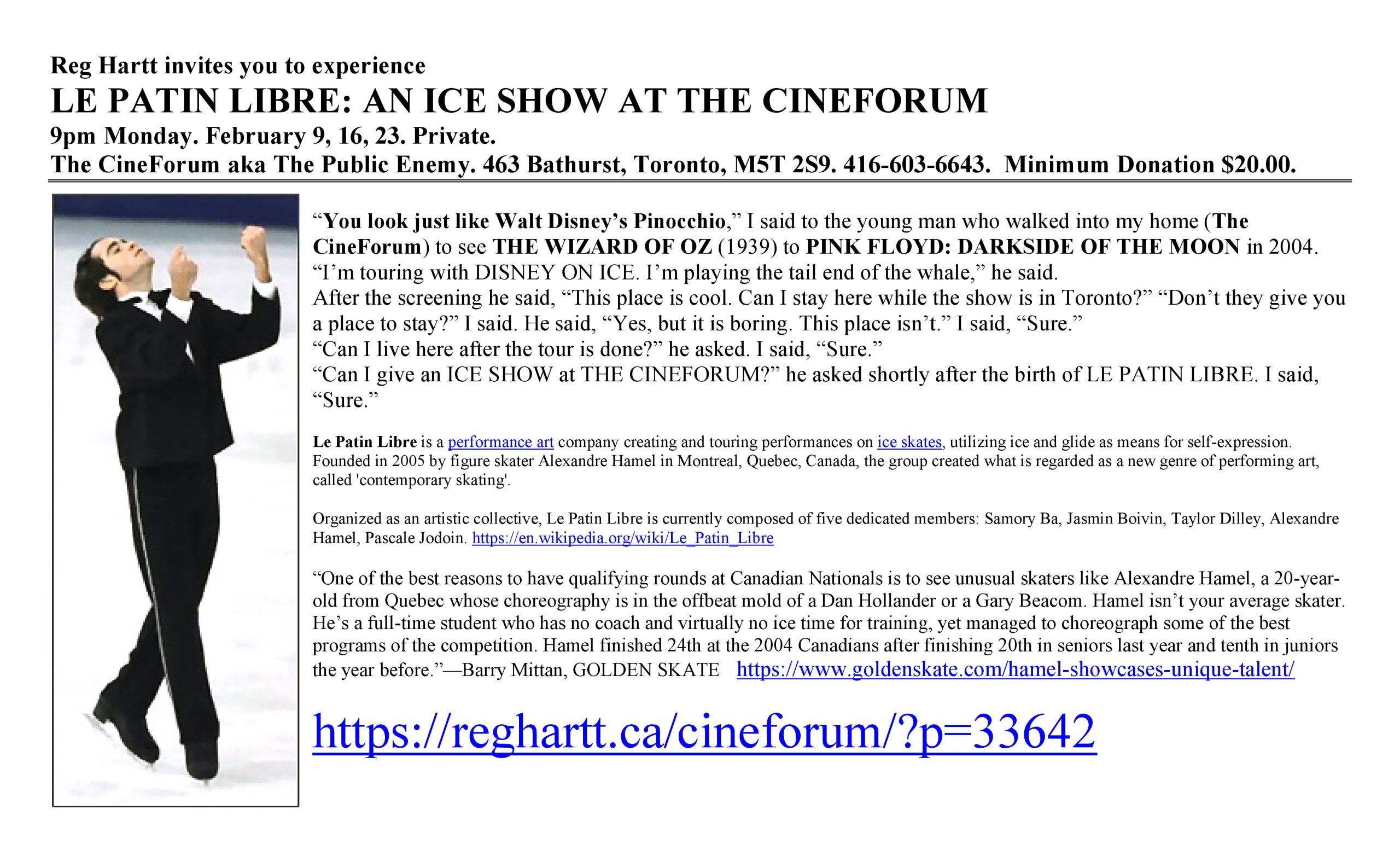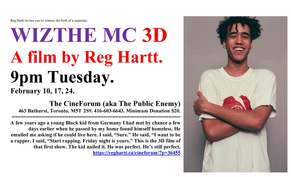 “What I like about Reg Hartt and what makes him a valuable figure is his belief in cinema as a living, breathing thing, something to be enjoyed and argued about, not genuflected at or framed on a wall and revered at a respected distance. In his presentations he refutes the conventional wisdom that films like THE BIRTH OF A NATION (1915), THE BATTLESHIP POTEMKIN (1925), and THE PHANTOM OF THE OPERA (1925) are better appreciated as historical artifacts than entertainments. To see KID DRACULA, his show that pairs F. W. Murnau’s NOSFERATU (1922) with Radiohead to surprisingly effective results is to be reminded that the classics were made for the raw public before they were made for cinema studies syllabi. I have rarely felt a film’s greatness in a classroom but I have often felt it at Reg Hartt’s CineForum.”—from a cinema studies student.