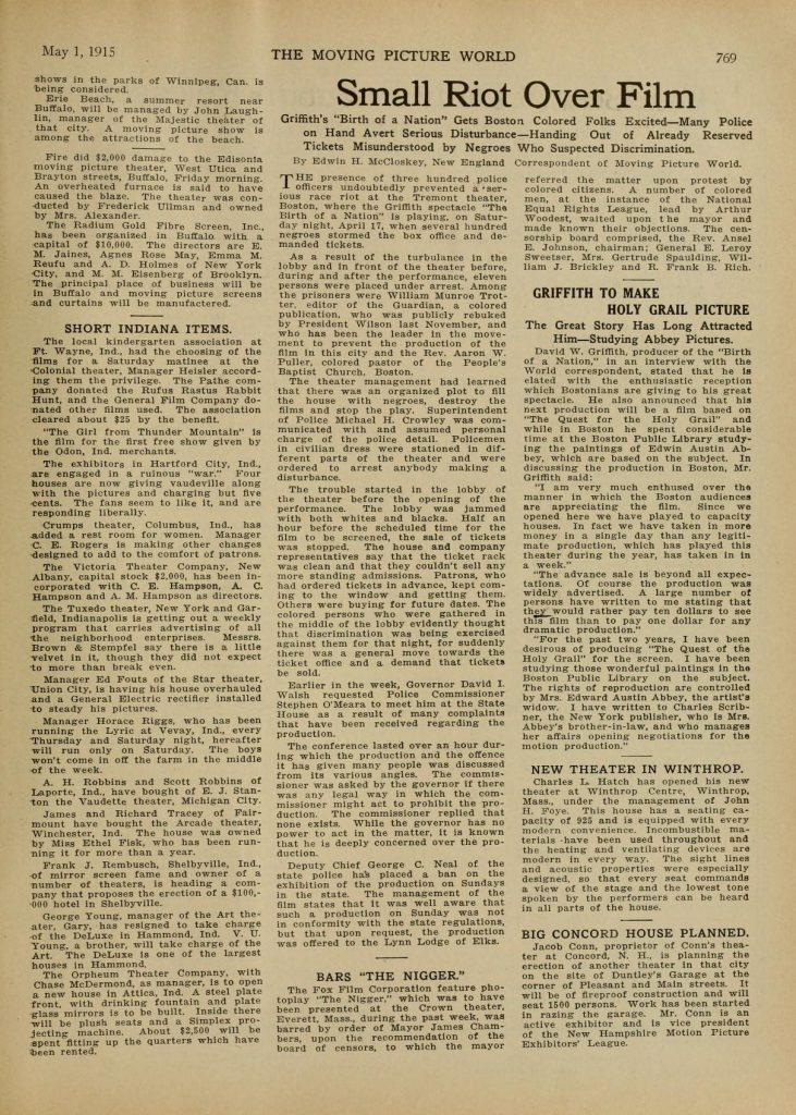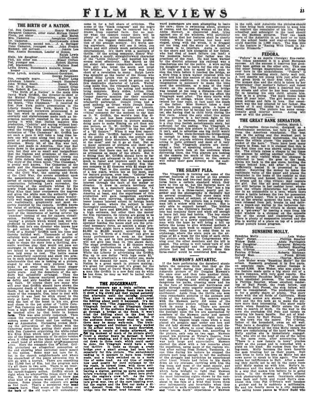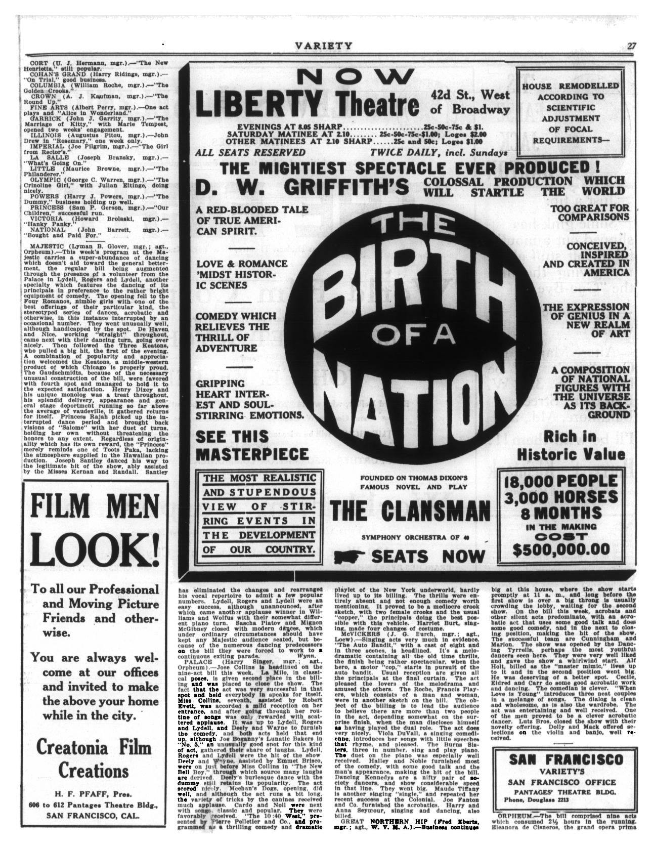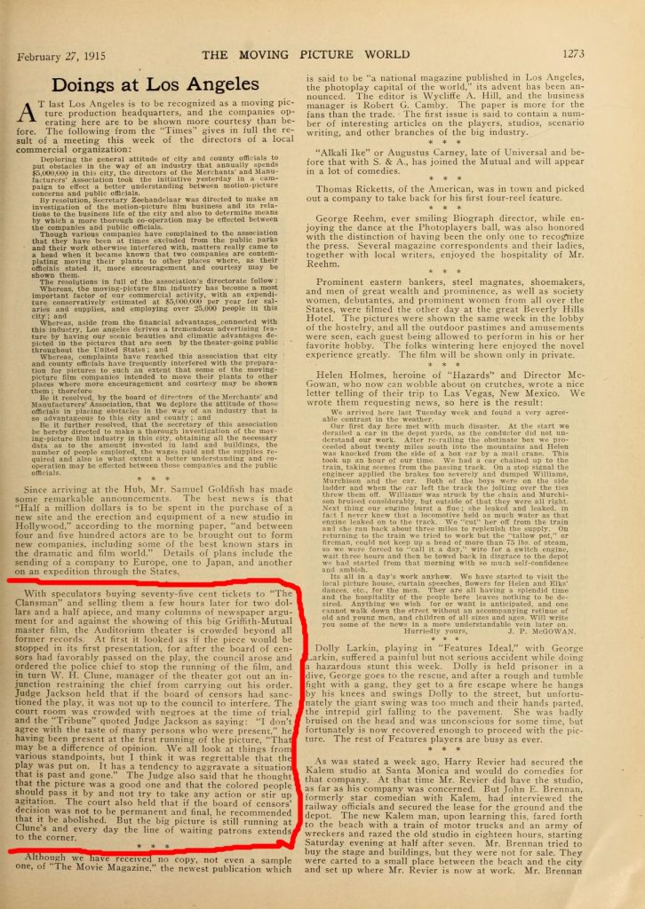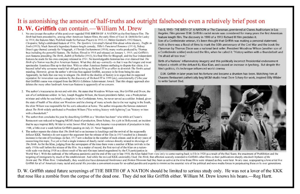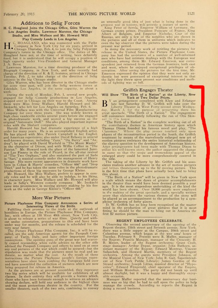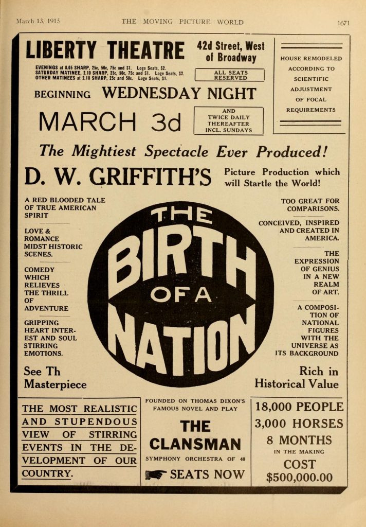 A friend from New York is coming to Toronto. He has asked to see D. W. Griffith’s THE BIRTH OF A NATION (1915) with the compositional collage I created for it after meeting with Bernard B. Brown who, at 16, played first violin in the orchestra which accompanied the picture throughout its original run at Clune’s Auditorium in in 1915 in Los Angeles.