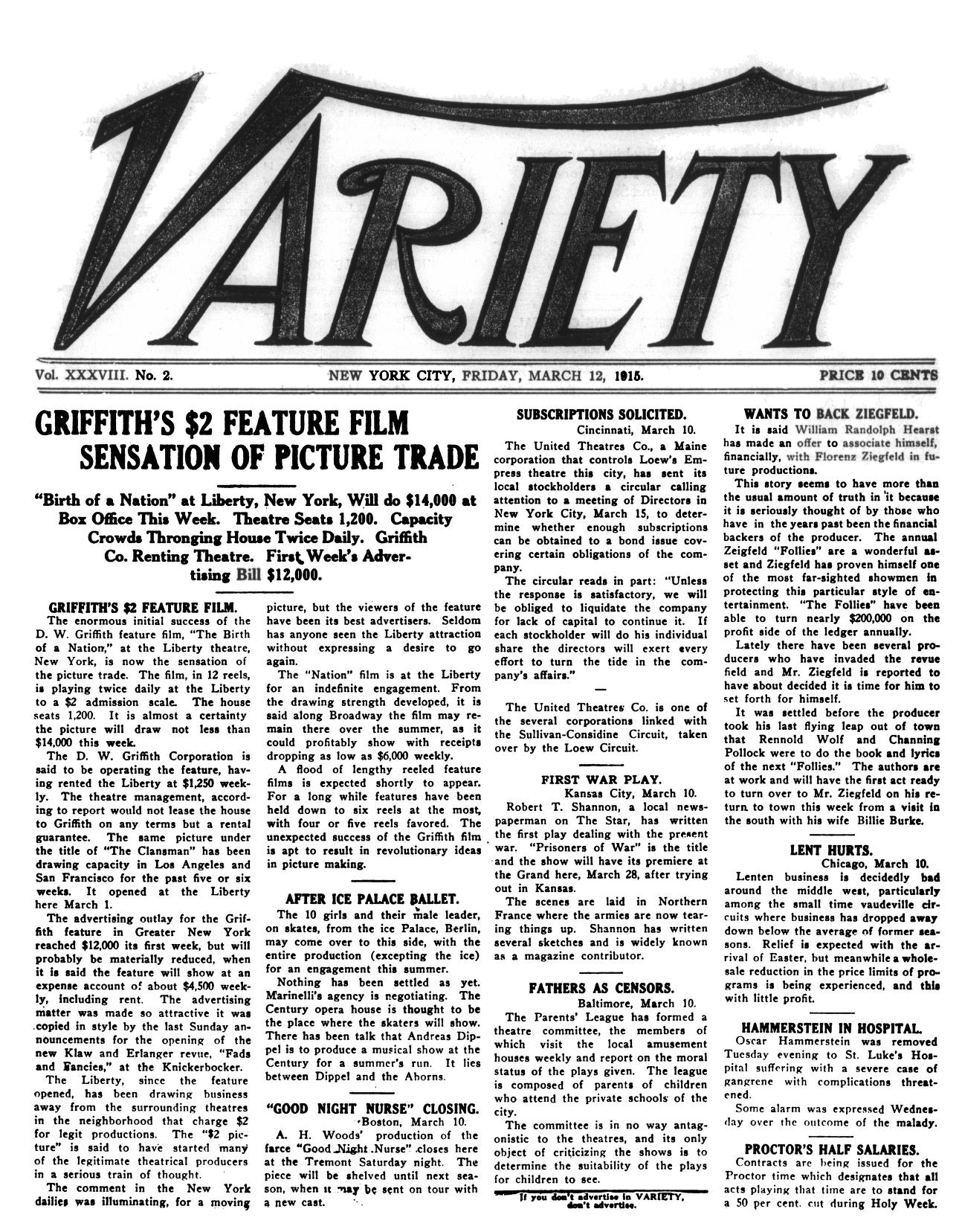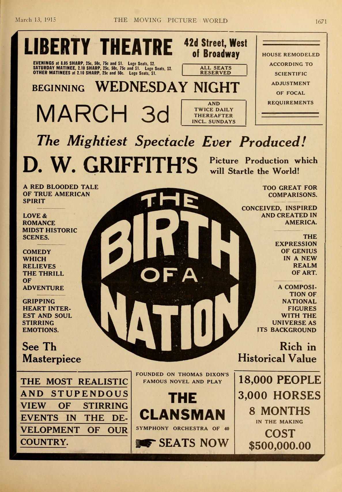 THE BIRTH OF A NATION was the first motion picture shown at top Legit Theatre prices which, in 1915, was $2 (see attached below).